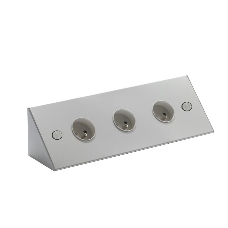 Bloc 3 prises d'angle (320 x 83 x 83) - finition aluminium - côtés gris - 16A - 230V - 2P+T