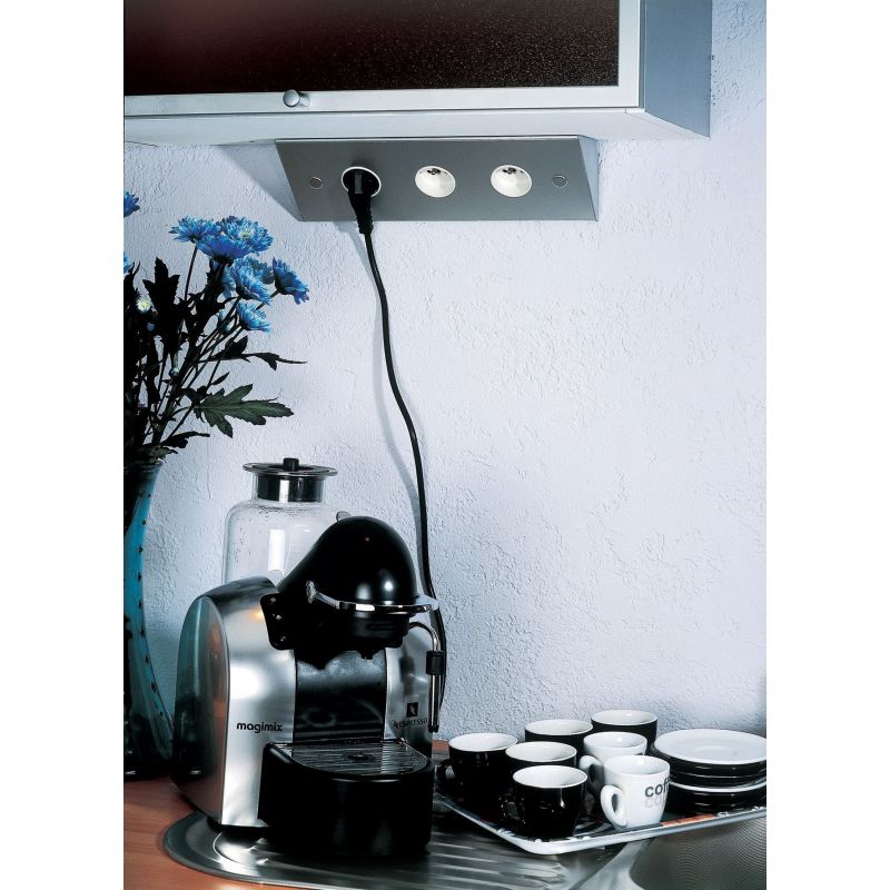 Bloc 3 prises d'angle (320 x 83 x 83) - finition aluminium avec côtés couleur gris - 16A - 230V - 2P+T