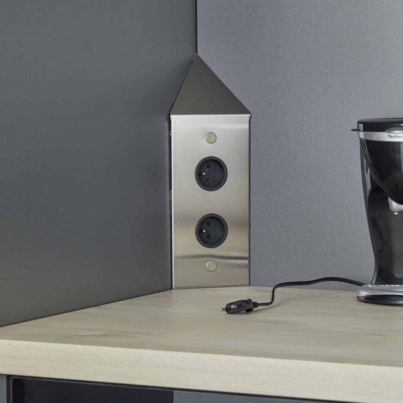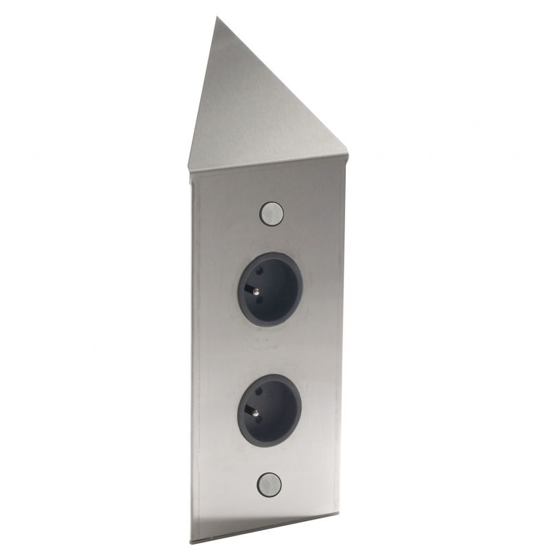 Bloc 2 prises d'angle (82x82x130mm) - finition inox brossé - 16A - 250V - 2P+T- A visser sous meuble haut