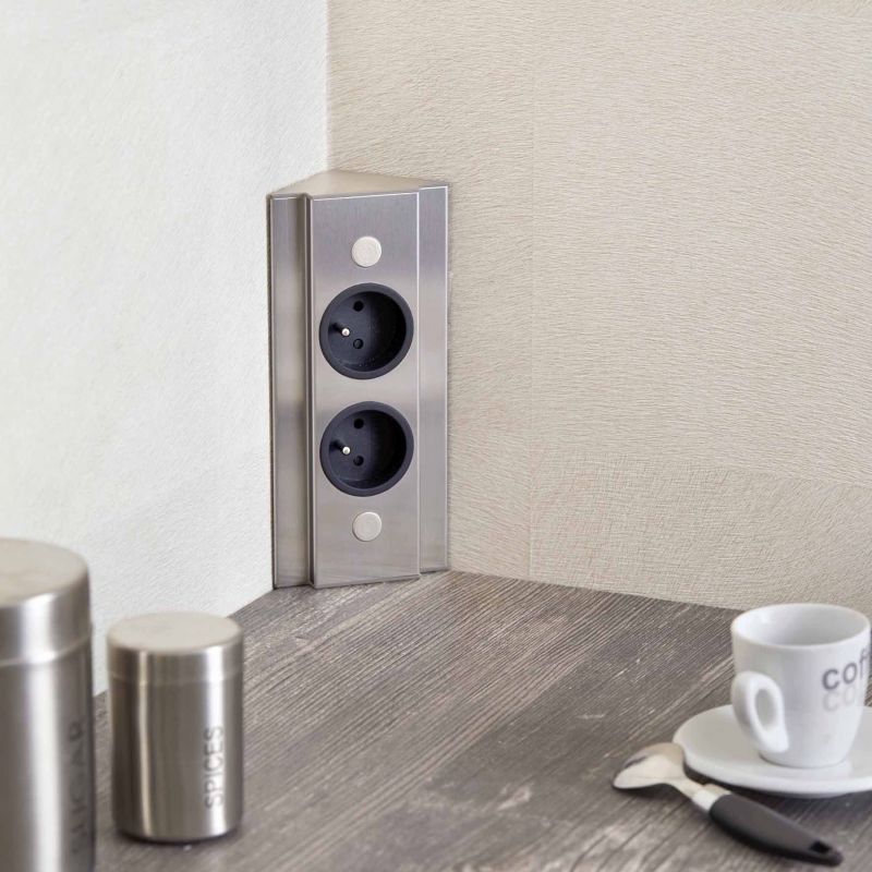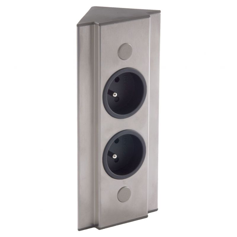 Bloc 2 prises d'angle (200 x 90 x 54,5) - finition inox brossé - 16A - 230V - 2P+T