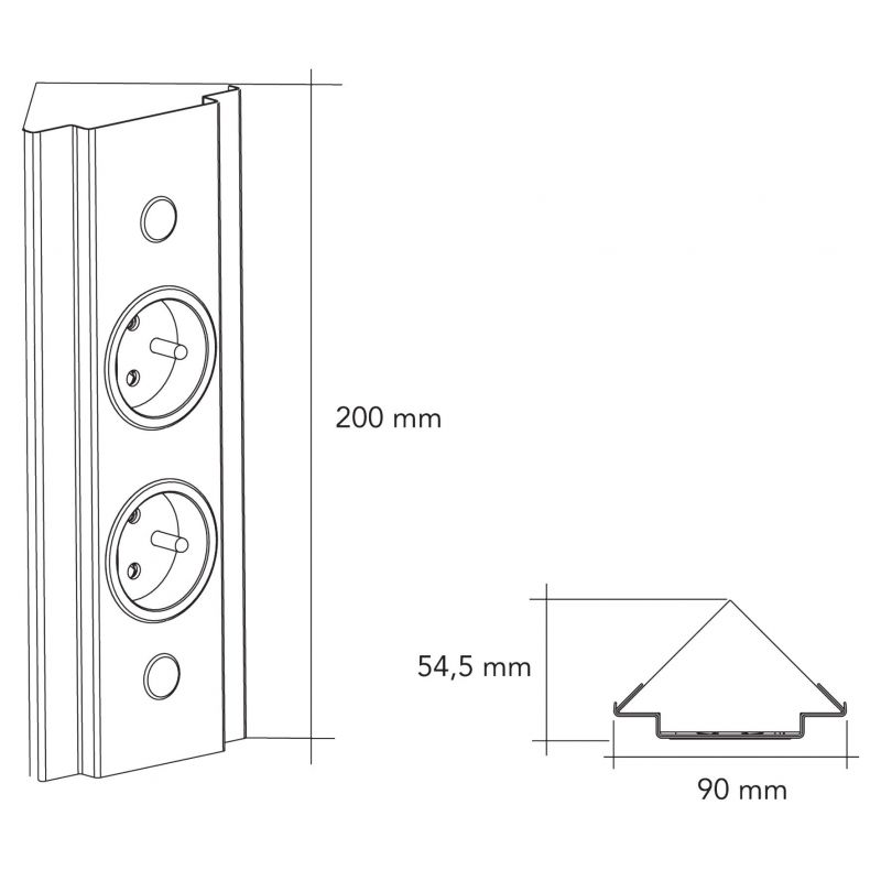 Bloc 2 prises d'angle (200 x 90 x 54,5) - finition noir - 16A - 230V - 2P+T