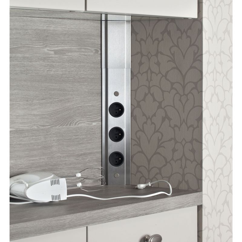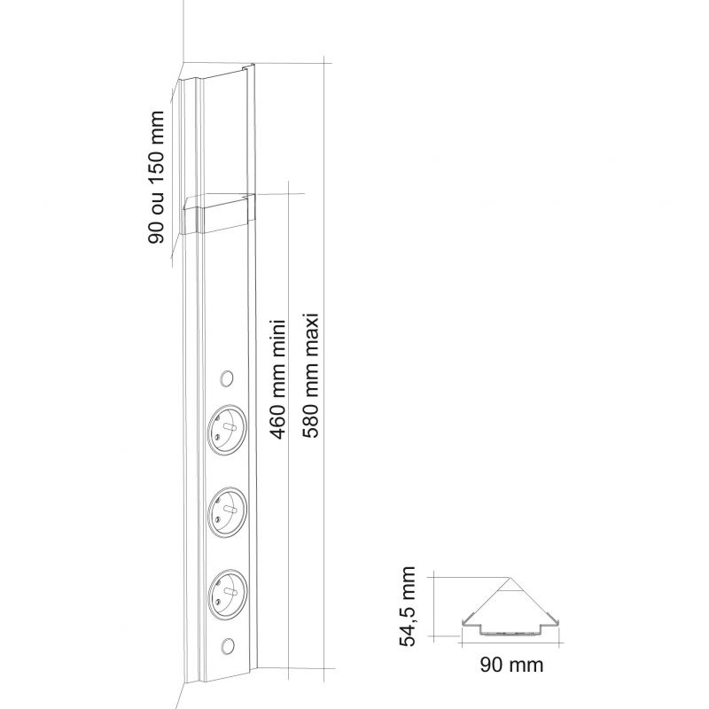 Bloc 3 prises d'angle (460 x 90 x 54,5) livré avec 2 pièces de réglage (H. 90 et 150mm) permettant d'ajuster la hauteur - finition inox brossé - 16A - 230V - 2P+T