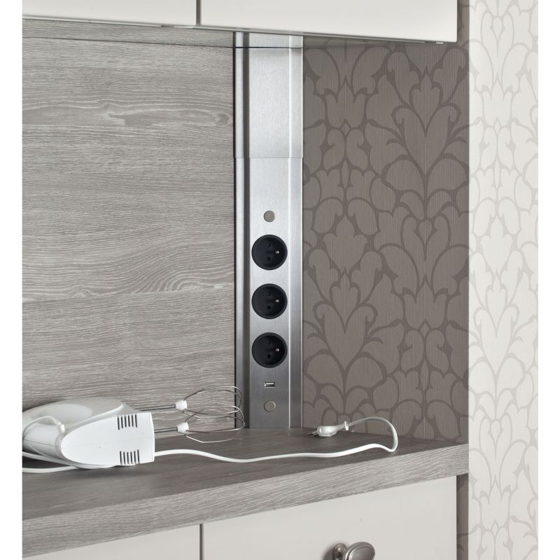 Bloc 3 prises + 1 port USB (0,8A - 5V) d'angle (460 x 90 x 54,5) livré avec 2 pièces de réglage (H. 90 et 150mm) permettant d'ajuster la hauteur - finition inox brossé - 16A - 230V - 2P+T