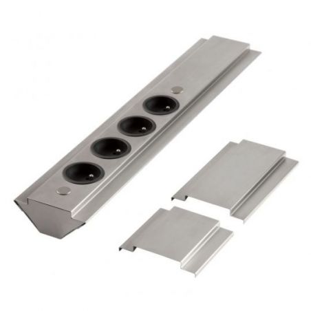 Bloc 4 prises d'angle (460 x 90 x 54,5) livré avec 2 pièces de réglage (H. 90 et 150mm) permettant d'ajuster la hauteur - finition inox brossé - 16A - 230V - 2P+T