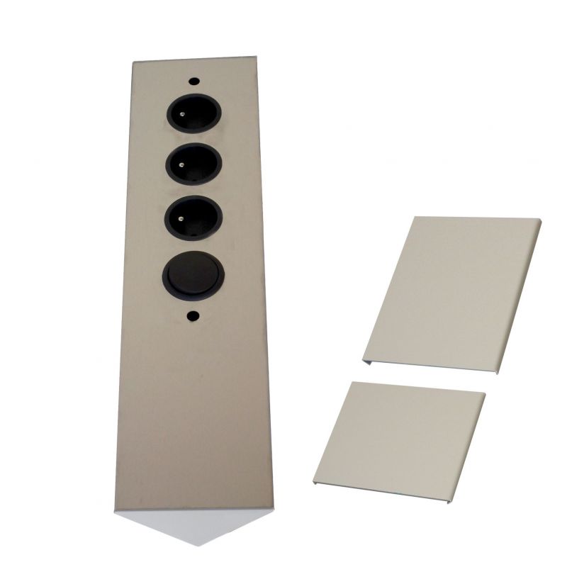 Bloc 3 prises d'angle + 1 interrupteur (460 x 115) livré avec 2 pièces de réglage pour ajuster la hauteur, Inox brossé