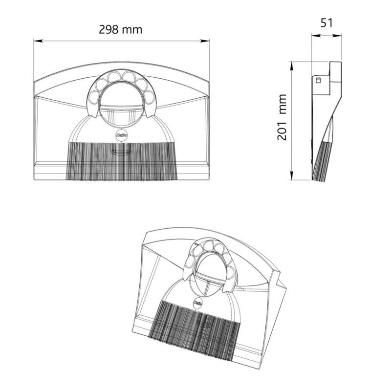 La balayette est dotée de poils doux et assure un ramassage efficace de la poussière, sans risque de rayer les surfaces. La forme de sa poignée permet une bonne prise en main tandis que la pelle garantit une collecte des déchets en un minimum de temps grâce à sa largeur de 298 mm.