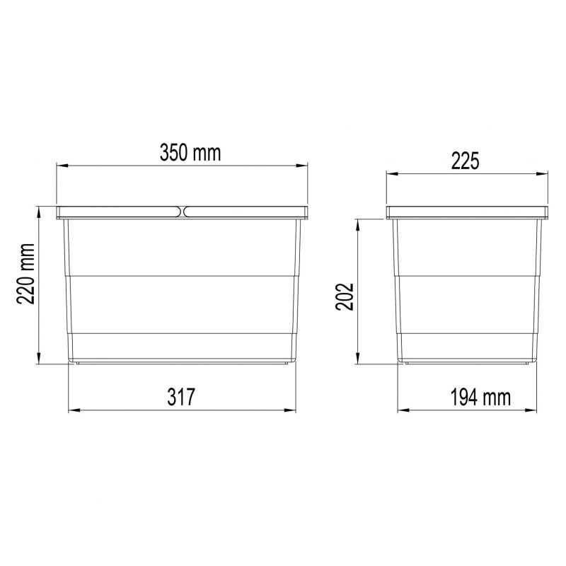Seau de poubelle gris pour aménagement de tiroir - 14L - H. 220 x l. 350 x P. 226mm