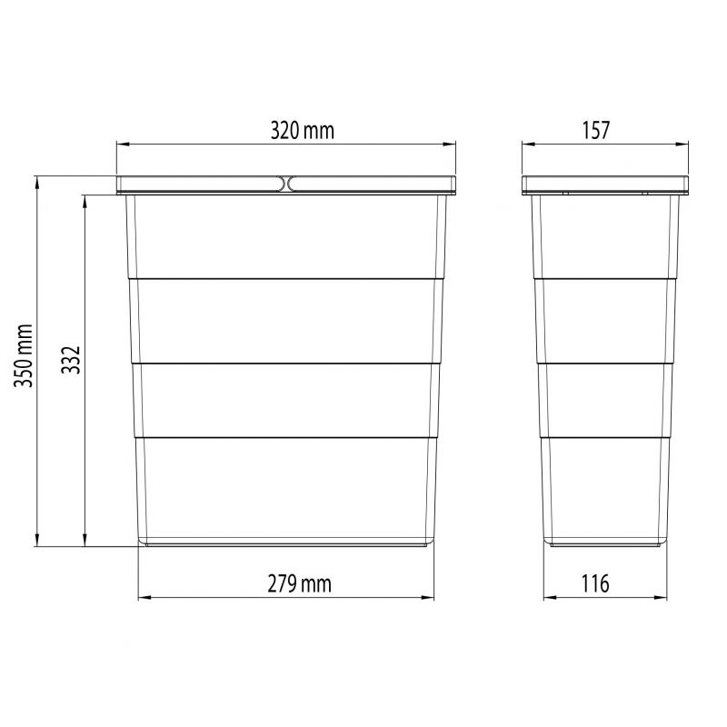 Seau de poubelle gris pour aménagement de tiroir - 14L - H. 350 x l. 320 x P. 156mm