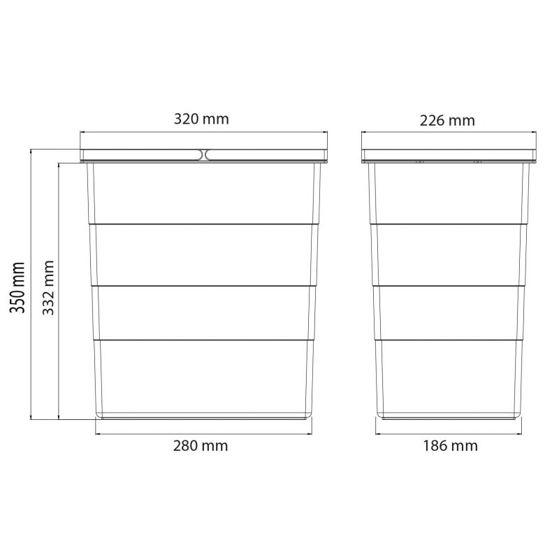 Seau de poubelle gris pour aménagement de tiroir - 20L - H. 350 x l. 320 x P. 226mm