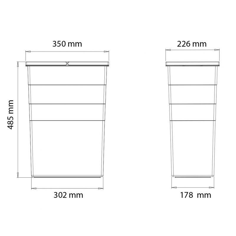 Seau de poubelle gris pour aménagement de tiroir - 29L - H. 485 x l. 350 x P. 226mm