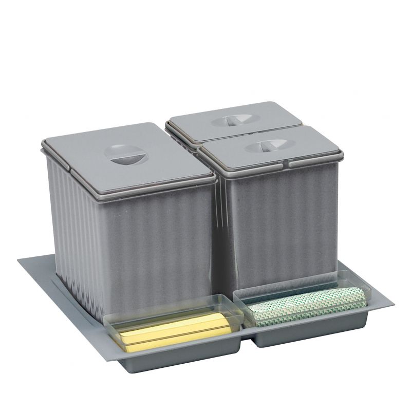 Collecteur composé de 3 seaux avec couvercles : 1 x 14L + 2 x 6,5L et de 2 bacs amovibles - pour tiroir de 600mm - H. 250mm
