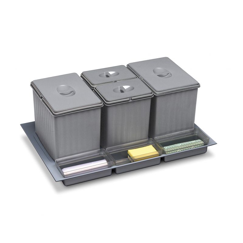 Collecteur composé de 4 seaux avec couvercles et de 3 bacs amovibles - pour tiroir de 800mm - H. 250mm-finition Gris