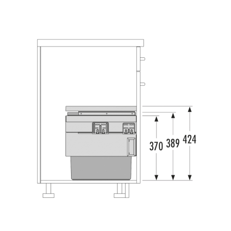 Poubelle pour meuble de 600mm composée de 2 bacs : 2 x 30L et d'1 couvercle coulissant- l. 562 à 568 x P. 400 x H. 424mm - ouverture manuelle-gris orion