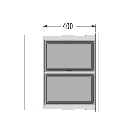 Poubelle pour meuble de 600mm composée de 2 bacs et d'1 couvercle coulissant - ouverture manuelle, Gris orion