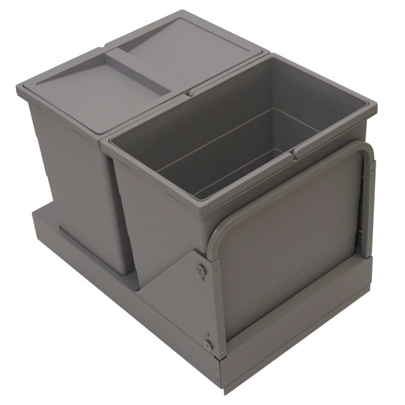 Poubelle pour meuble de 400 à 600mm composée de 2 seaux avec couvercles - ouverture manuelle avec système SOFT
