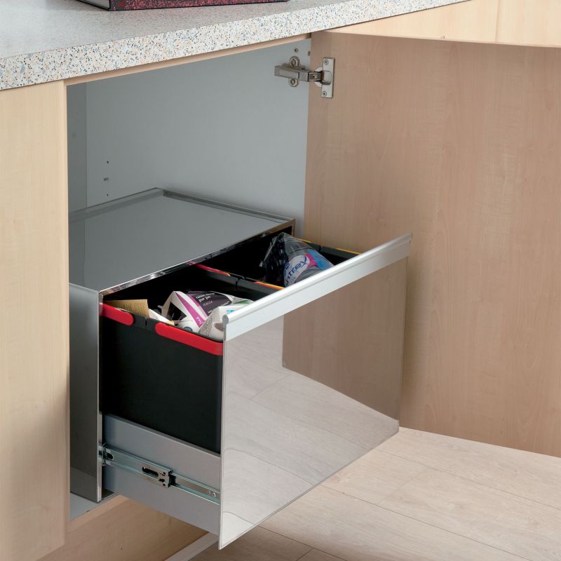 Poubelle spéciale sous-évier pour meuble de 600mm composée de 2 seaux : 2 x 15L- l. 480 x P. 324 x H. 352mm - ouverture manuelle-Inox