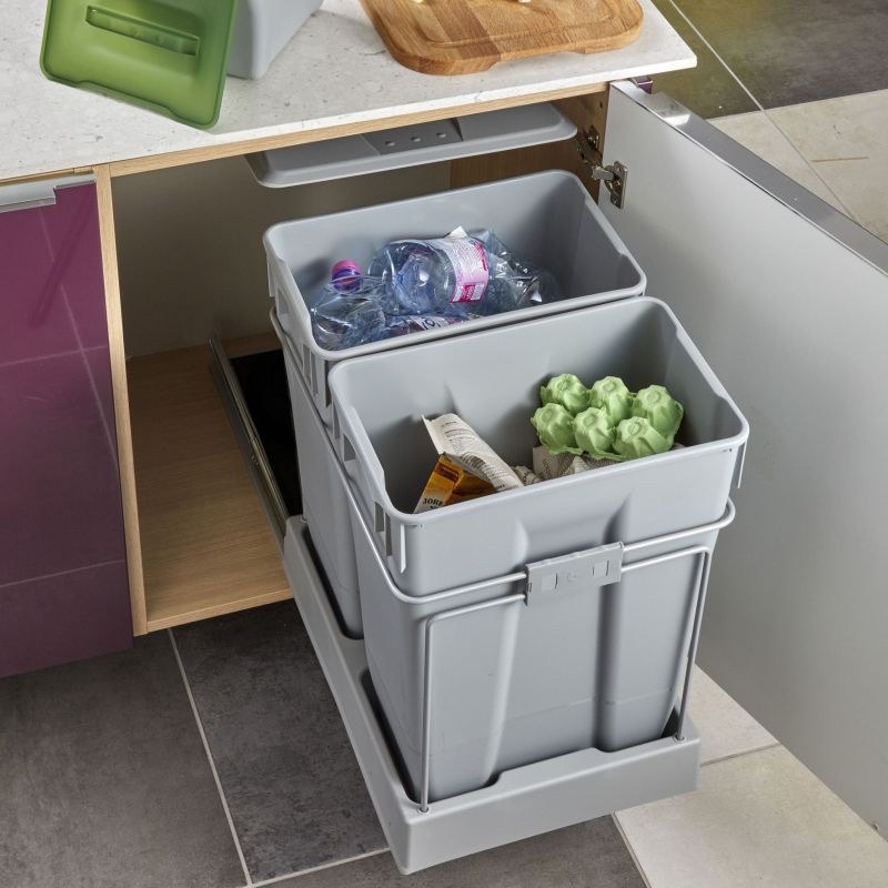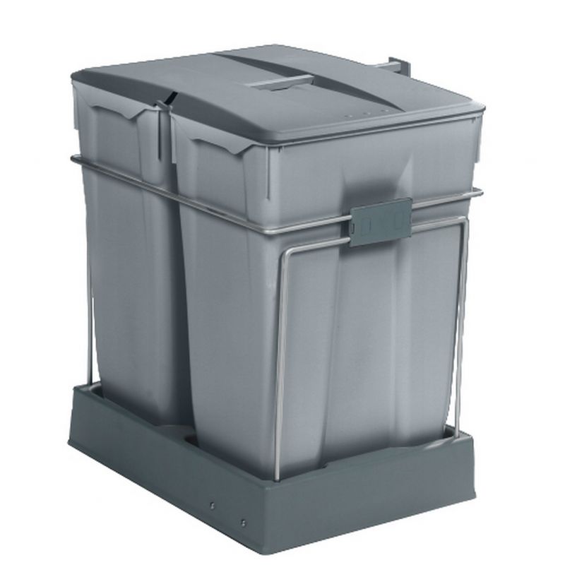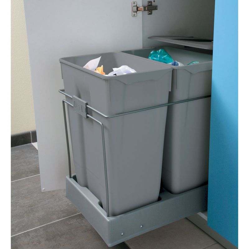 Poubelle écologique grande capacité pour meuble de 450 composée de 2 bacs : 2 x 35L et d'1 couvercle fixe - l. 380 x P. 493 x H. 593mm - ouverture manuelle