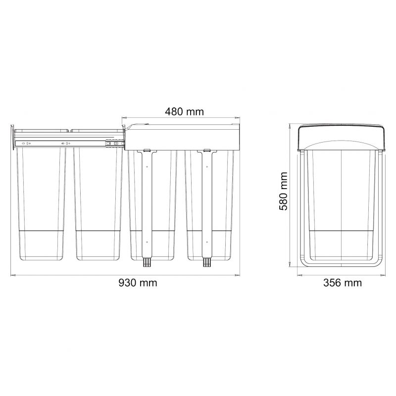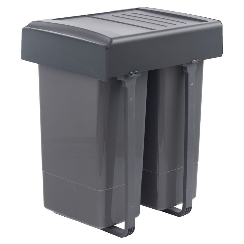 Poubelle pour meuble de 450mm composée de 2 seaux : 2 x 26L - l.356 x P. 480 x H. 580mm - ouverture manuelle avec système SOFT-Gris orion