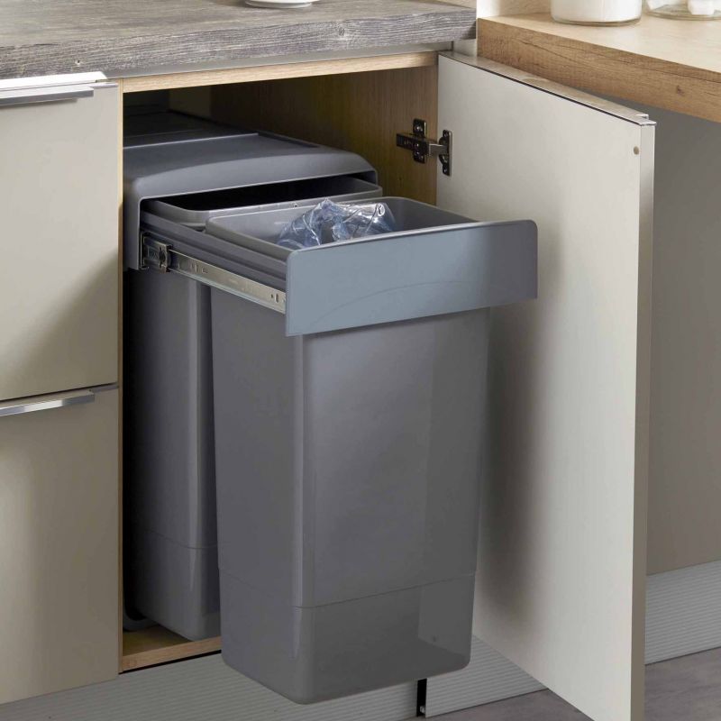 Poubelle pour meuble de 450mm composée de 2 seaux de 26L - ouverture manuelle avec système SOFT-Gris orion