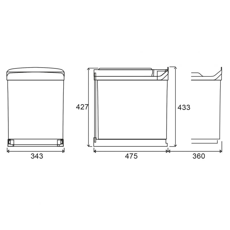 Poubelle en polypropylène anti-choc pour meuble de 450mm composée de 2 seaux : 2 x 21L - l. 343 x P. 475 x H. 433mm - ouverture automatique