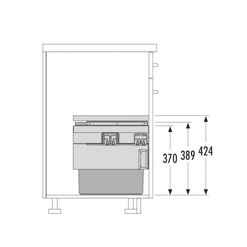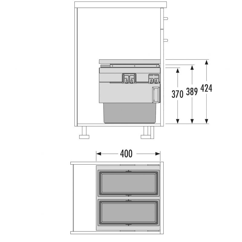 Poubelle pour meuble de 450mm composée de 2 seaux : 2 x 18L et d'un couvercle coulissant- l. 412 à 418 x P. 400 x H. 424mm - ouverture manuelle avec système SOFT