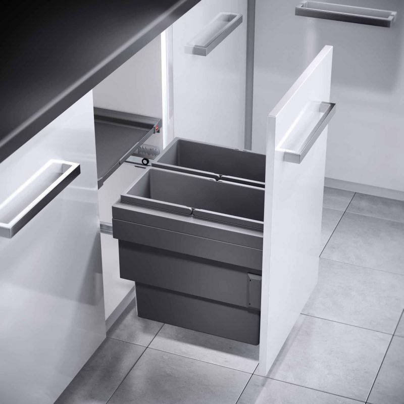 Poubelle pour meuble de 450mm composée de 2 seaux de 18L et d'un couvercle coulissant - ouverture manuelle avec système SOFT