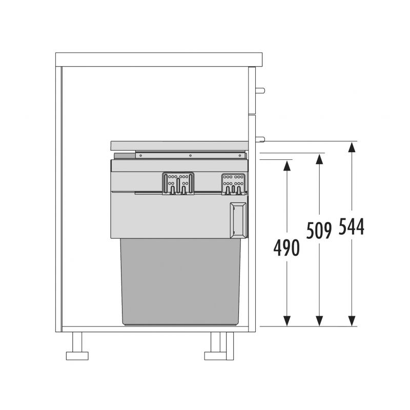 Poubelle pour meuble de 450mm 55L et d'un couvercle coulissant - ouverture manuelle avec système SOFT