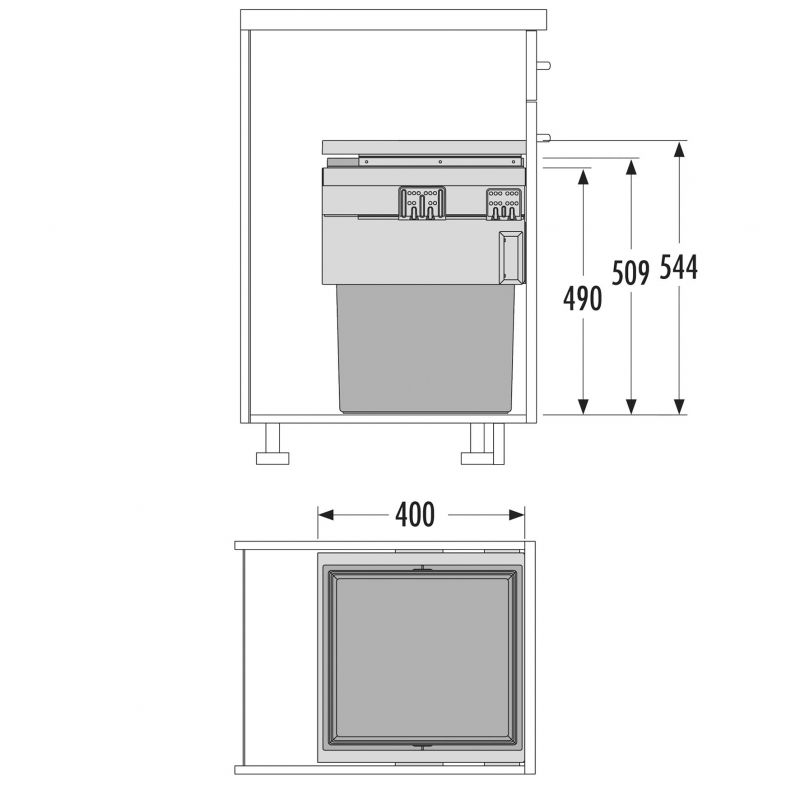 Poubelle pour meuble de 450mm composée d'1 seau : 1 x 55L et d'un couvercle coulissant- l. 412 à 418 x P. 400 x H. 544mm - ouverture manuelle avec système SOFT