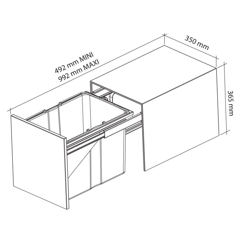 Poubelle pour meuble de 450mm composée d'1 seau : 1 x 34L - l. 350 x P. 492 x H. 365mm - ouverture manuelle