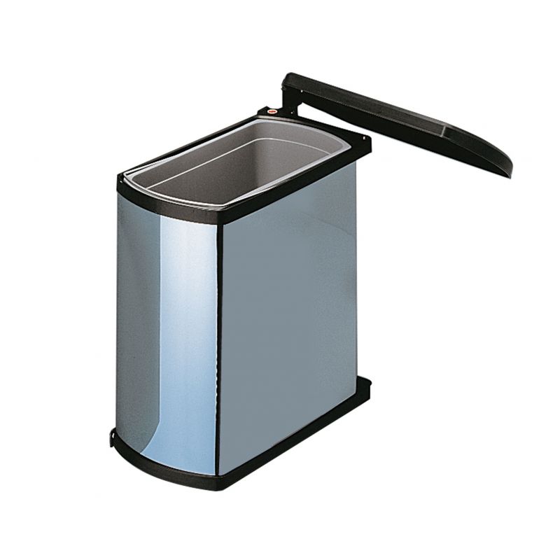 Poubelle automatique en inox et noir de 18L - l. 205 x P. 390 x H. 420mm - fixation sur porte et caisson - pour meuble de 450mm