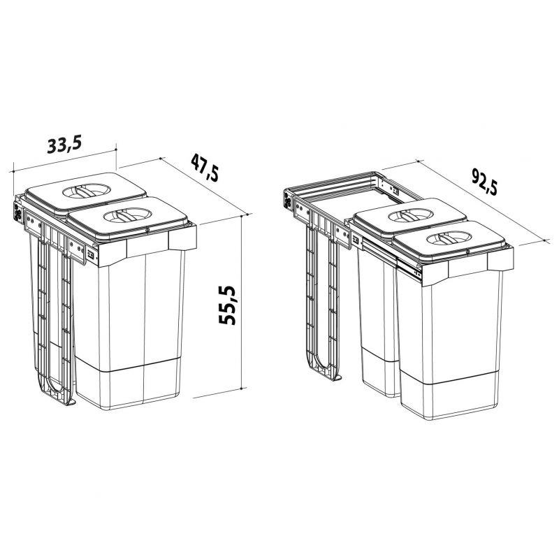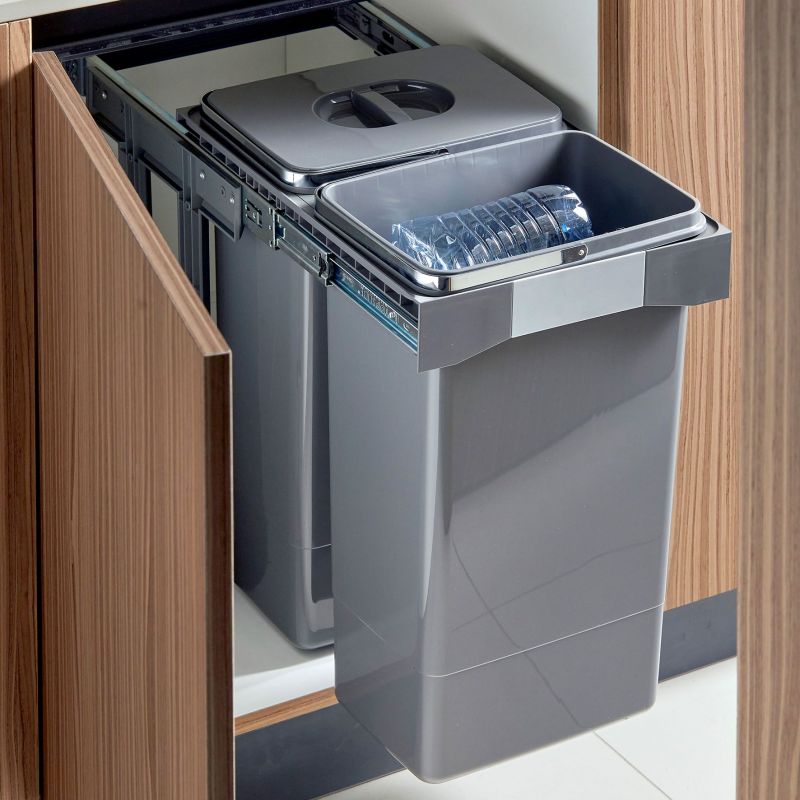 Poubelle sous évier pour 400mm- 26Lx2- Finition gris orion