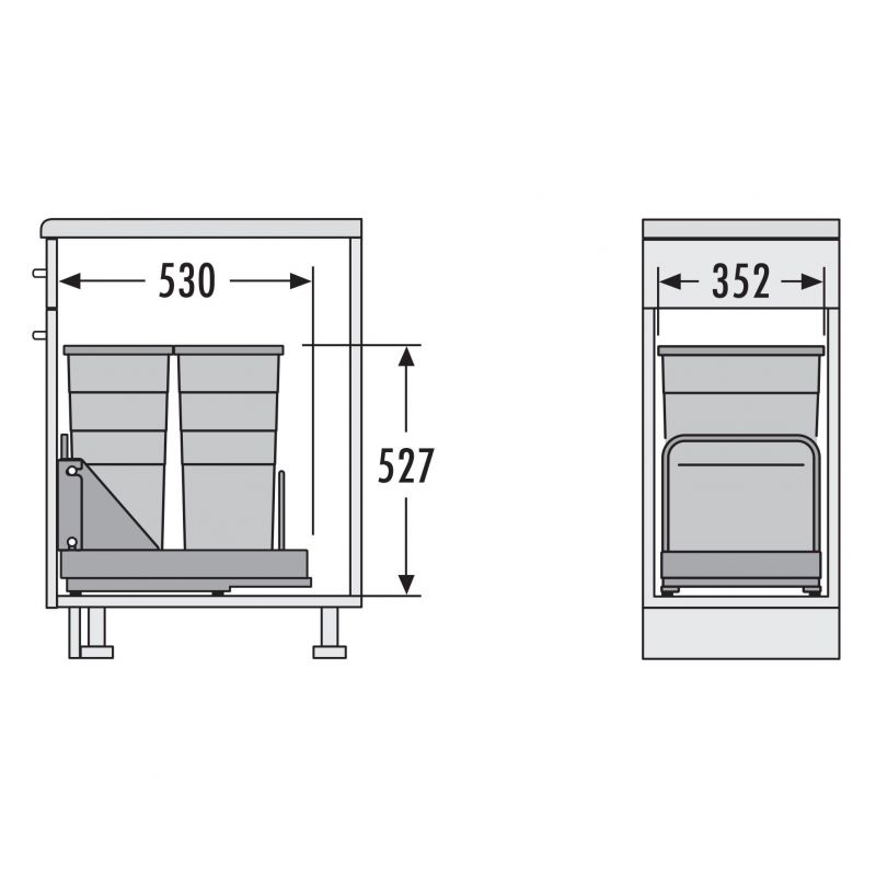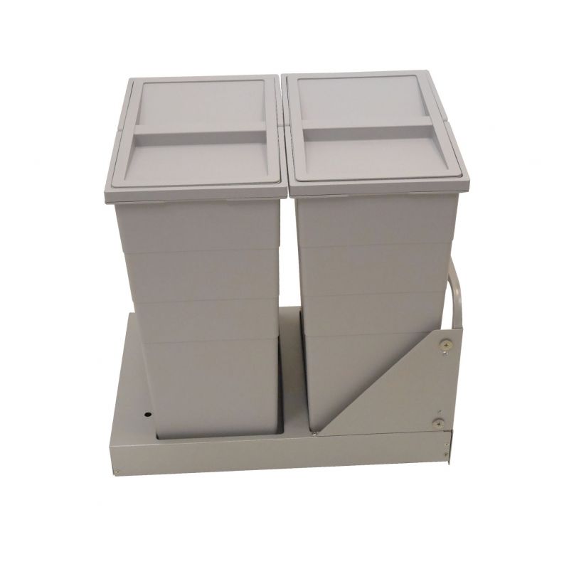 Poubelle pour meuble de 400mm composée de 2 seaux avec couvercles : 2 x 29L - l.352 x P. 530 x H. 523mm - ouverture manuelle avec système SOFT-Gris