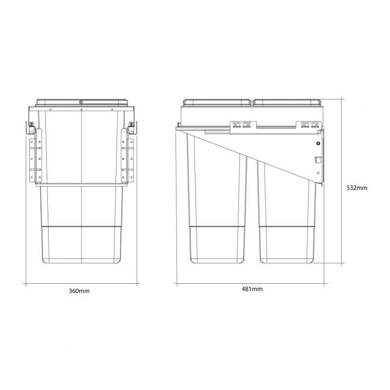 Poubelle pour meuble de 400mm composé de 2 seaux de 26L -Finition gris orion