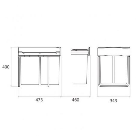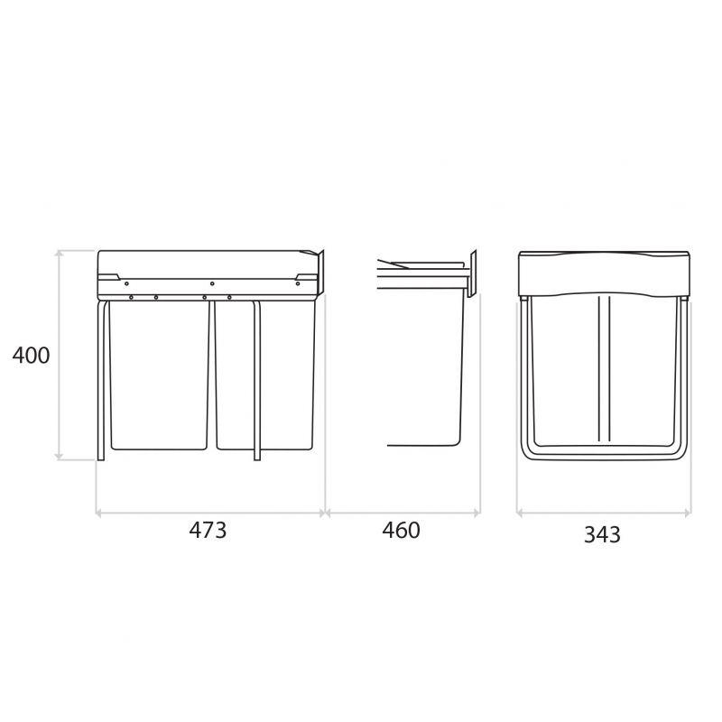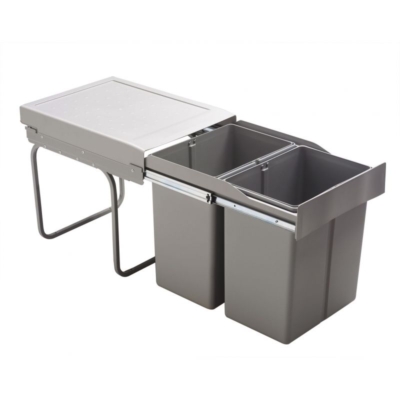Poubelle pour meuble de 400mm composée de 2 seaux : 2 x 21L - l.343 x P. 473 x H. 400mm - ouverture manuelle-Gris