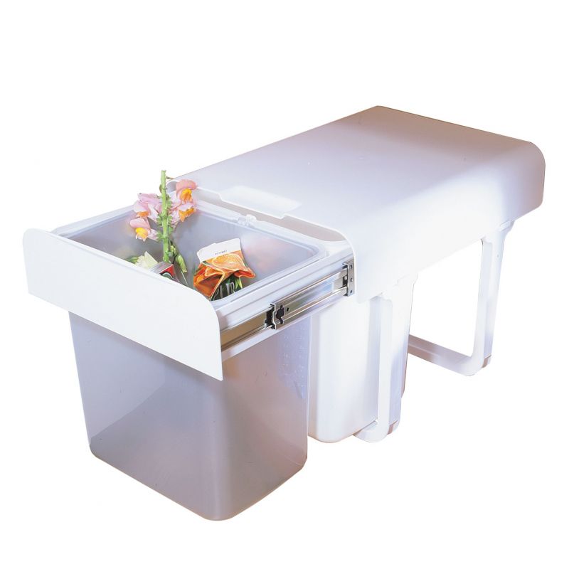 Poubelle pour meuble de 400mm composée de 2 seaux de 16L - l.355 x P. 470 x H. 360mm - ouverture manuelle, Blanc/gris