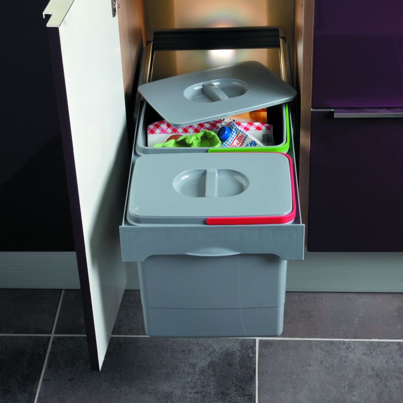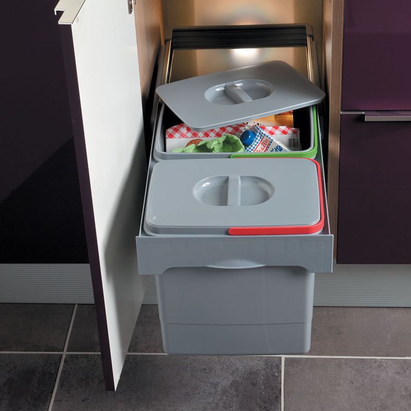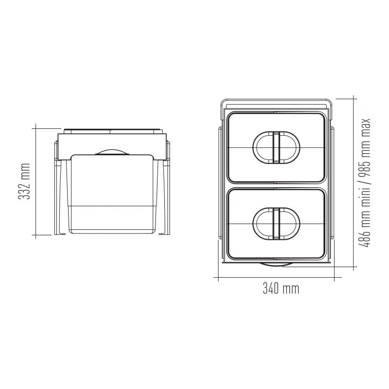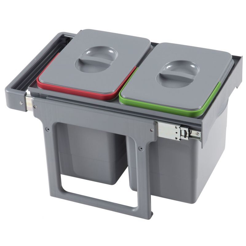 Poubelle pour meuble de 400mm composée de 2 seaux de 15L - l.340 x P. 486 à 985 x H. 332mm - ouverture manuelle-Gris