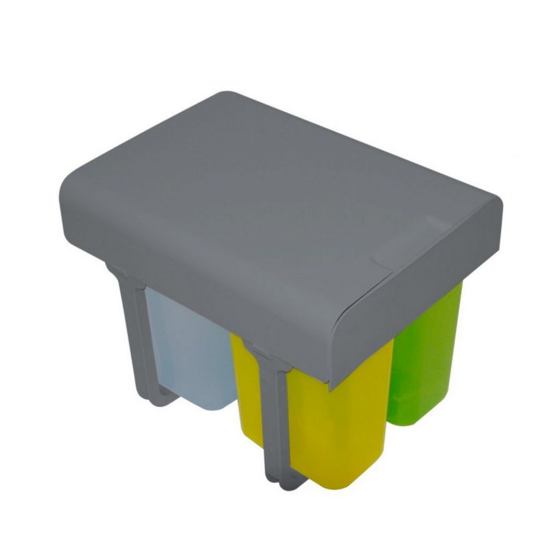 Poubelle pour meuble de 400mm composée de 3 seaux : 1 x 16L gris) et 2 x 8L (vert et jaune) - l.355 x P. 470 x H. 360mm - ouverture manuelle