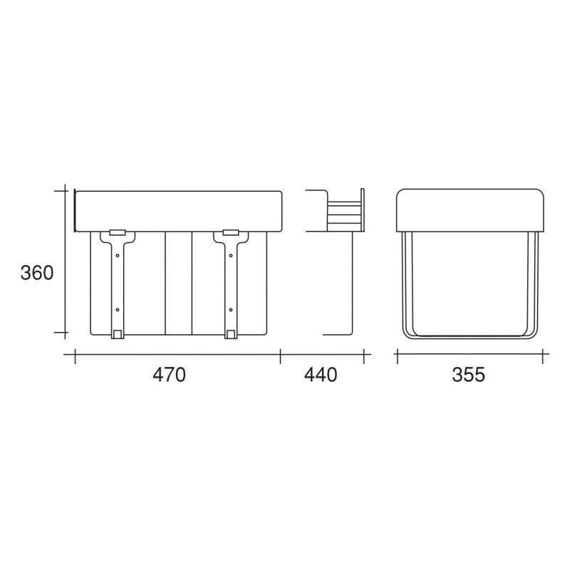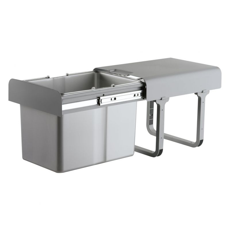 Poubelle pour meuble de 400mm composée d'1 seau : 1 x 34L - l.355x P. 470 x H. 360mm - couleur : gris avec cadre gris - ouverture manuelle