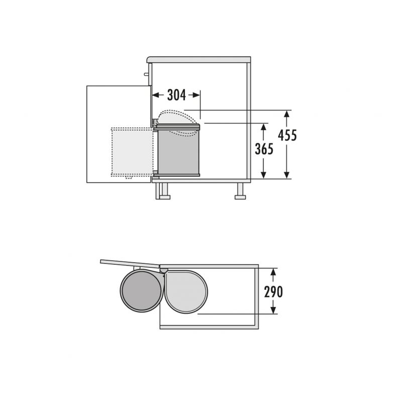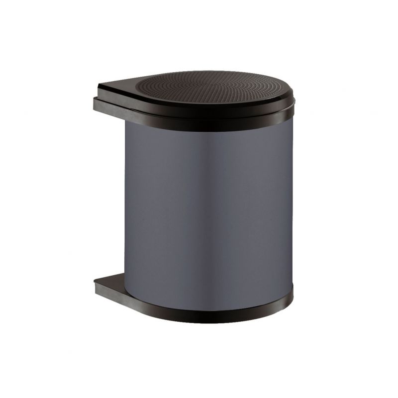 Poubelle ronde automatique en plastique gris foncé de 15L - l. 290 x P. 304 x H. 365mm - fixation sur porte et caisson - pour meuble de 400mm