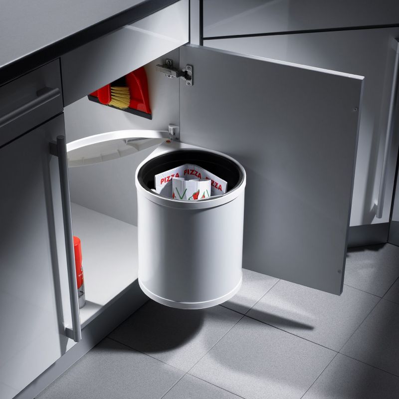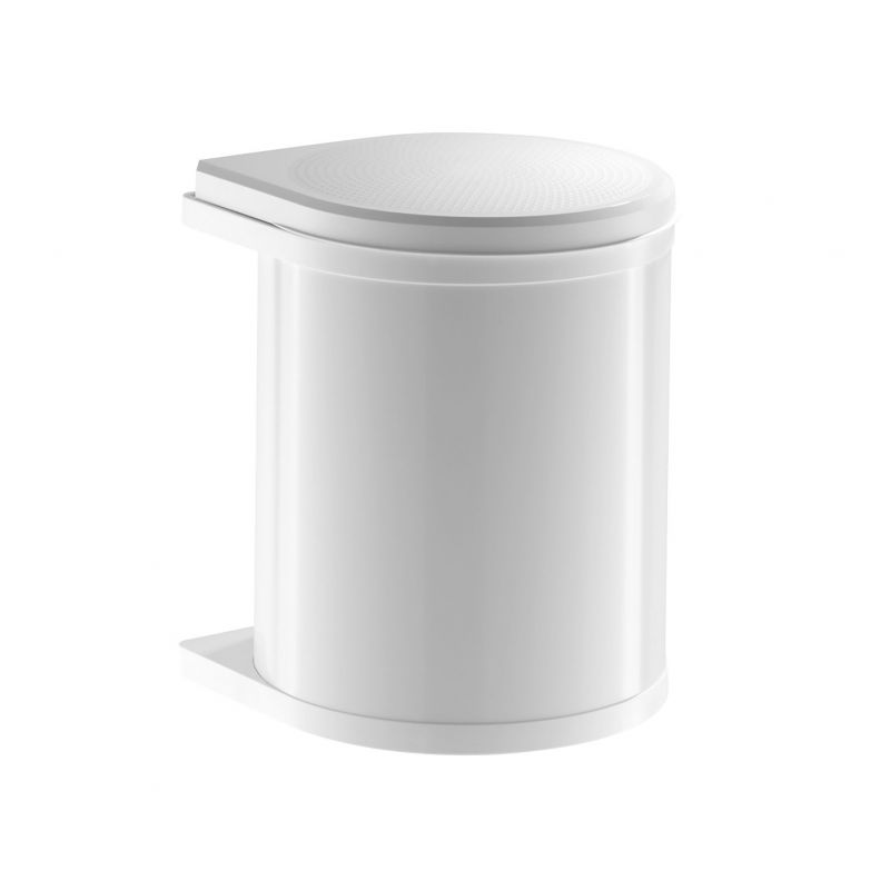 Poubelle ronde 15L pour meuble 400mm - Corps en plastique blanc - Couvercle et cercle blanc