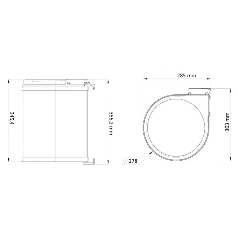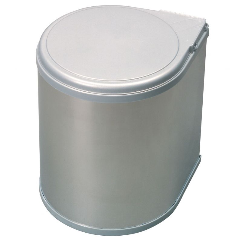 Poubelle ronde automatique en acier inox et gris de 13L - l. 285 x P. 303 x H. 356mm - fixation sur porte et caisson - pour meuble de 400mm