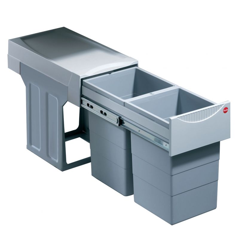 Poubelle pour meuble de 300mm composée de 2 seaux : 2 x 15L - l. 251 x P. 482 x H. 400mm - ouverture manuelle-Gris