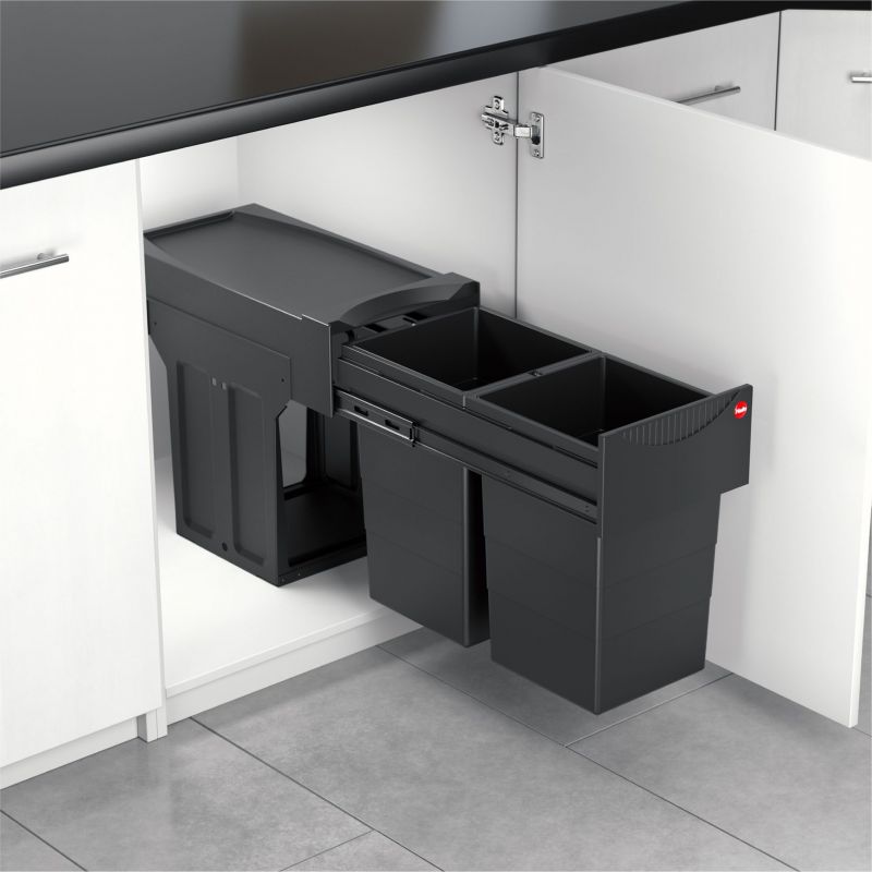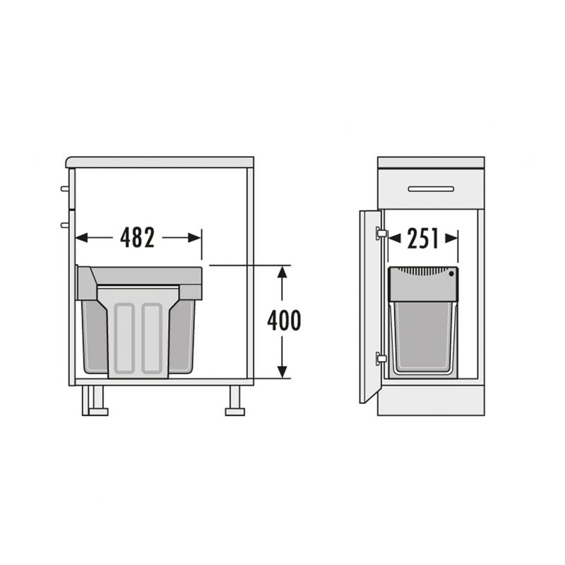 Poubelle pour meuble de 300mm composée de 2 seaux de 15L - l. 251 x P. 482 x H. 400mm - ouverture manuelle- NR