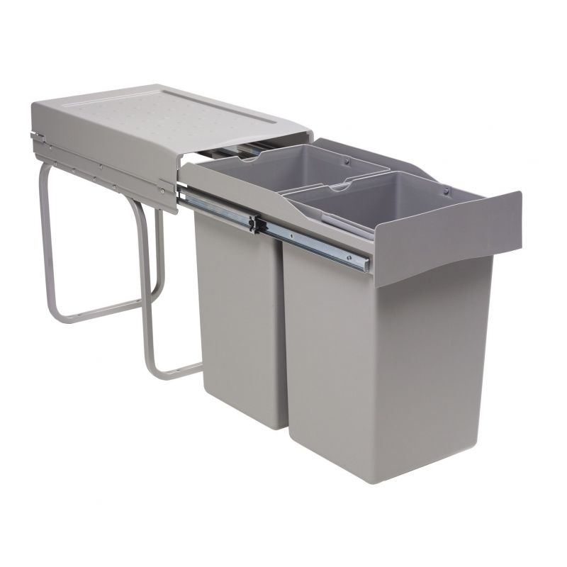 Poubelle Gris pour meuble de 300mm composée de 2 seaux : 2 x 14L - l. 255 x P. 450 x H. 400mm - ouverture manuelle
