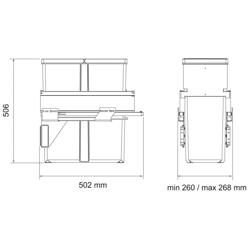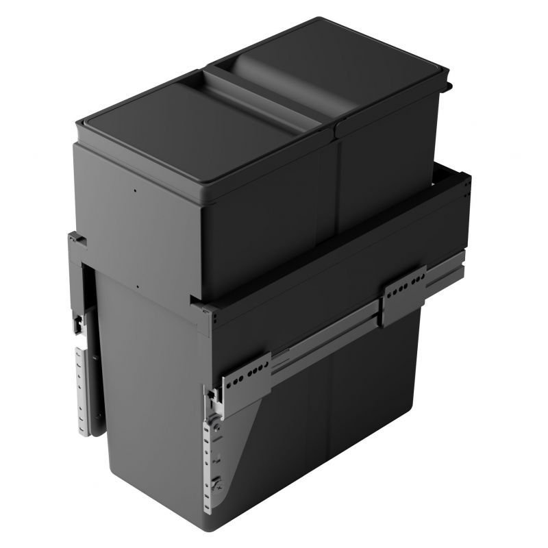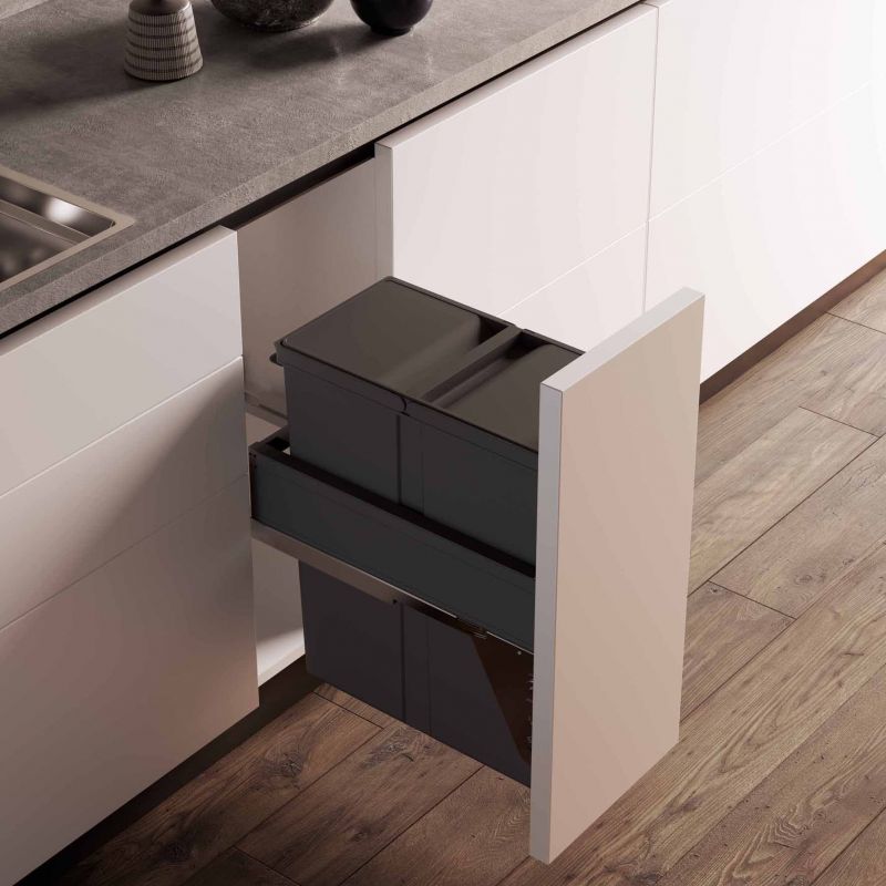 Poubelle de tri sélectif grande capacité pour meuble de 300mm composée d'1 bac avec couvercle : 1 x 40L - H. 506mm - ouverture manuelle avec système SOFT