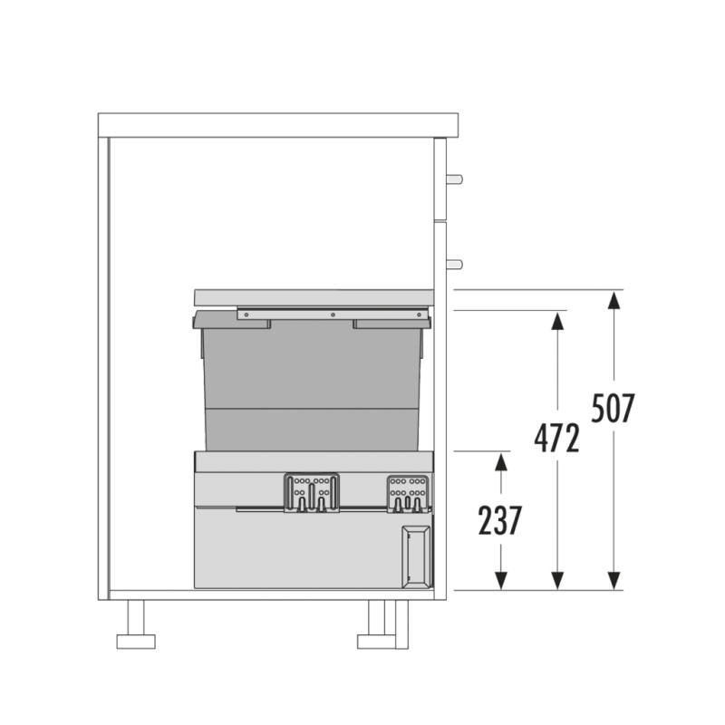 Poubelle suspendue 30L pour meuble de 300 mm – Gris Orion – Couvercle fixe avec tapis et système soft