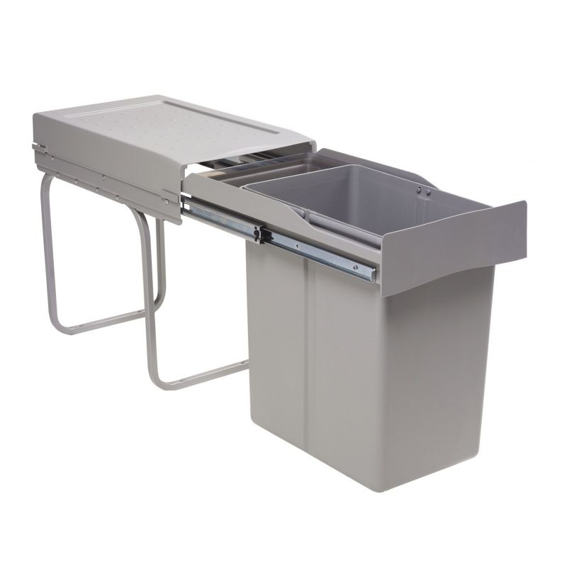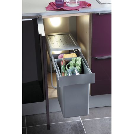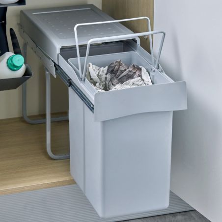 Poubelle coulissante écologique 20L pour meuble cuisine 300 mm – Fixation par vis – Gris