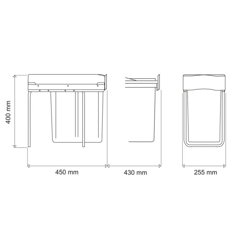 Cette poubelle coulissante écologique de 20 litres est spécialement conçue pour s’intégrer dans un meuble de cuisine de 300 mm de largeur. Avec ses dimensions compactes de 400 mm de hauteur, 450 mm de profondeur et 255 mm de largeur, elle optimise l’espace sous votre plan de travail tout en offrant une capacité pratique pour le tri et le stockage des déchets. Son coloris gris sobre s’adapte facilement à toutes les cuisines modernes.