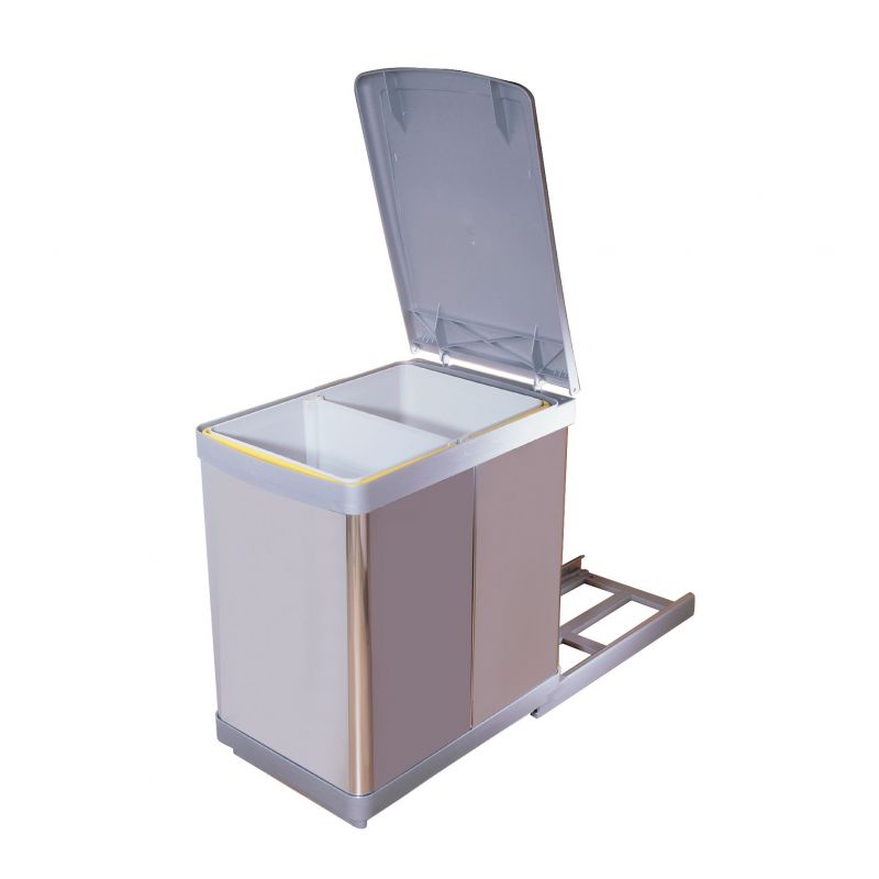 Poubelle encastrable 20 L pour meuble de 300 mm – inox, séparateur amovible et ouverture automatique