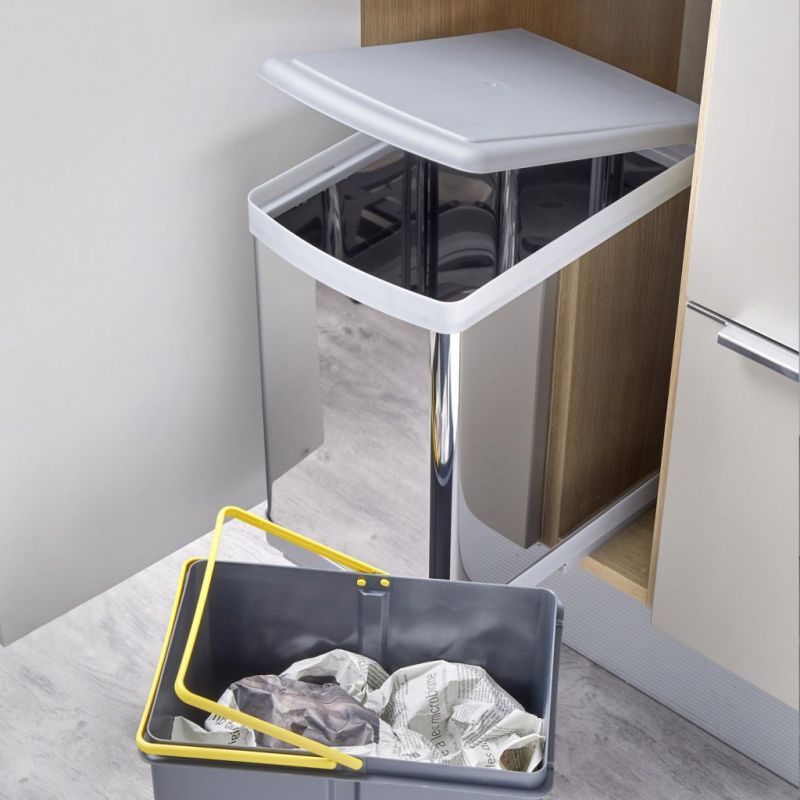 Discrète, fonctionnelle et bien pensée, cette poubelle encastrable de 20 litres s’intègre parfaitement dans un meuble de 300 mm de large. Elle est idéale pour optimiser l’aménagement sous évier ou dans un caisson bas, tout en gardant une cuisine propre et bien rangée.